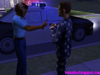 Miután a rendőr megbilincselte és betette a betörőt az autóba, visszamegy a házba, hogy simünknek vagy kártérítést adjon az ellopott tárgyakért, vagy jutalmat adjon a rendőrség segítéséért. Ekkor jelenik meg csak az angol opció a rendőrautó hátsó ajtajára kattintva: "Open Rear Door", vagyis kinyitni a hátsó ajtót.